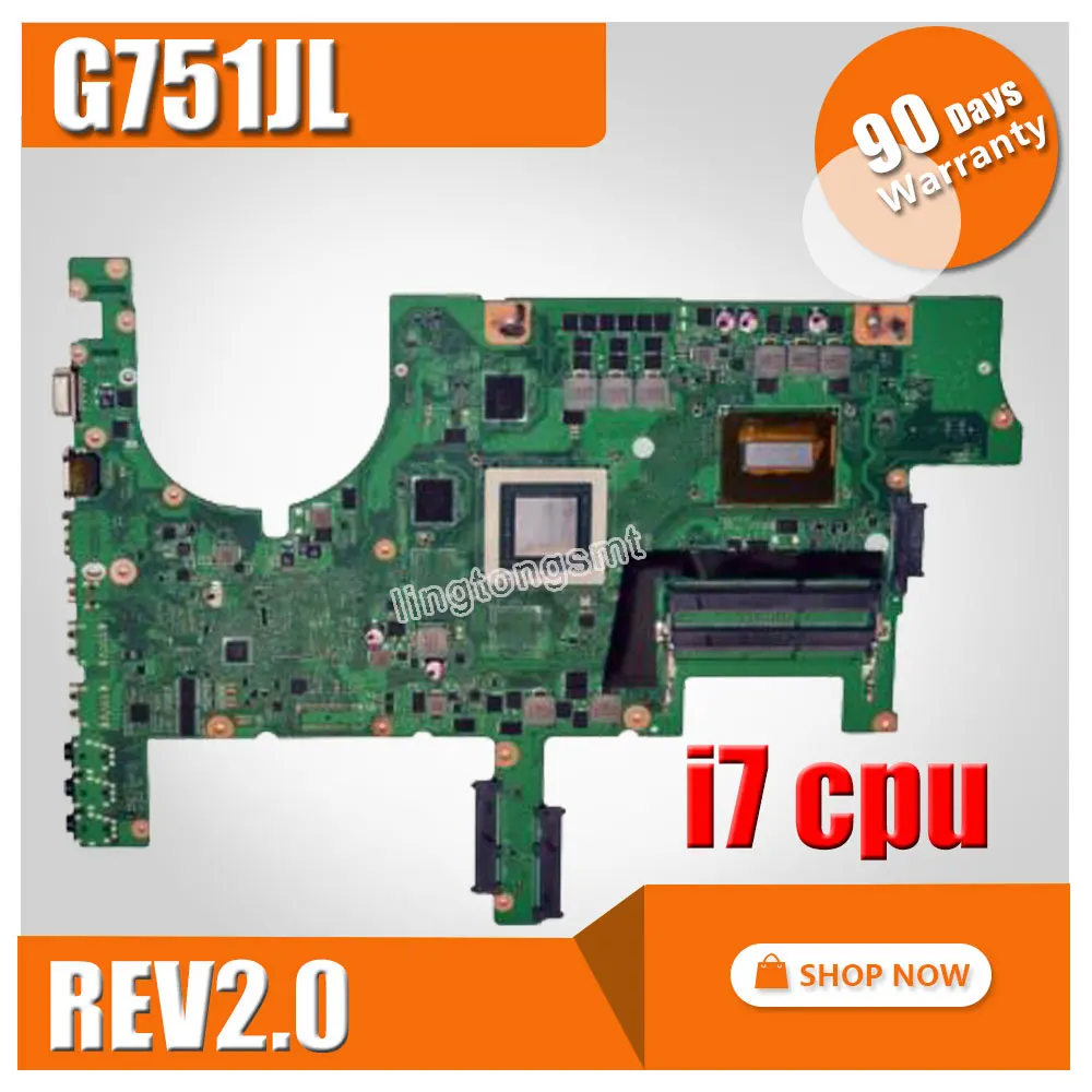 Samxinno para Asus G751JL laptop motherboard G751JL Mainboard REV2.0 con tarjeta gráfica i7 CPU 100% probado